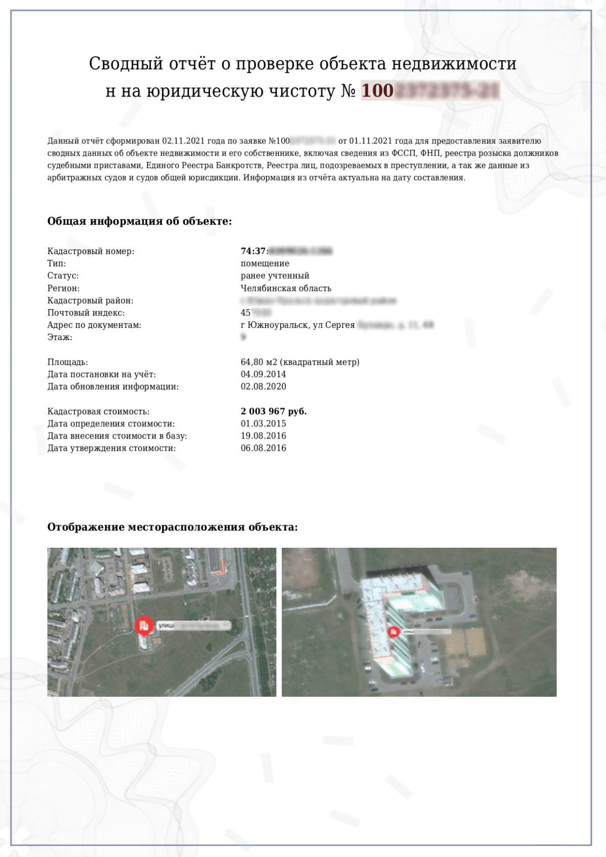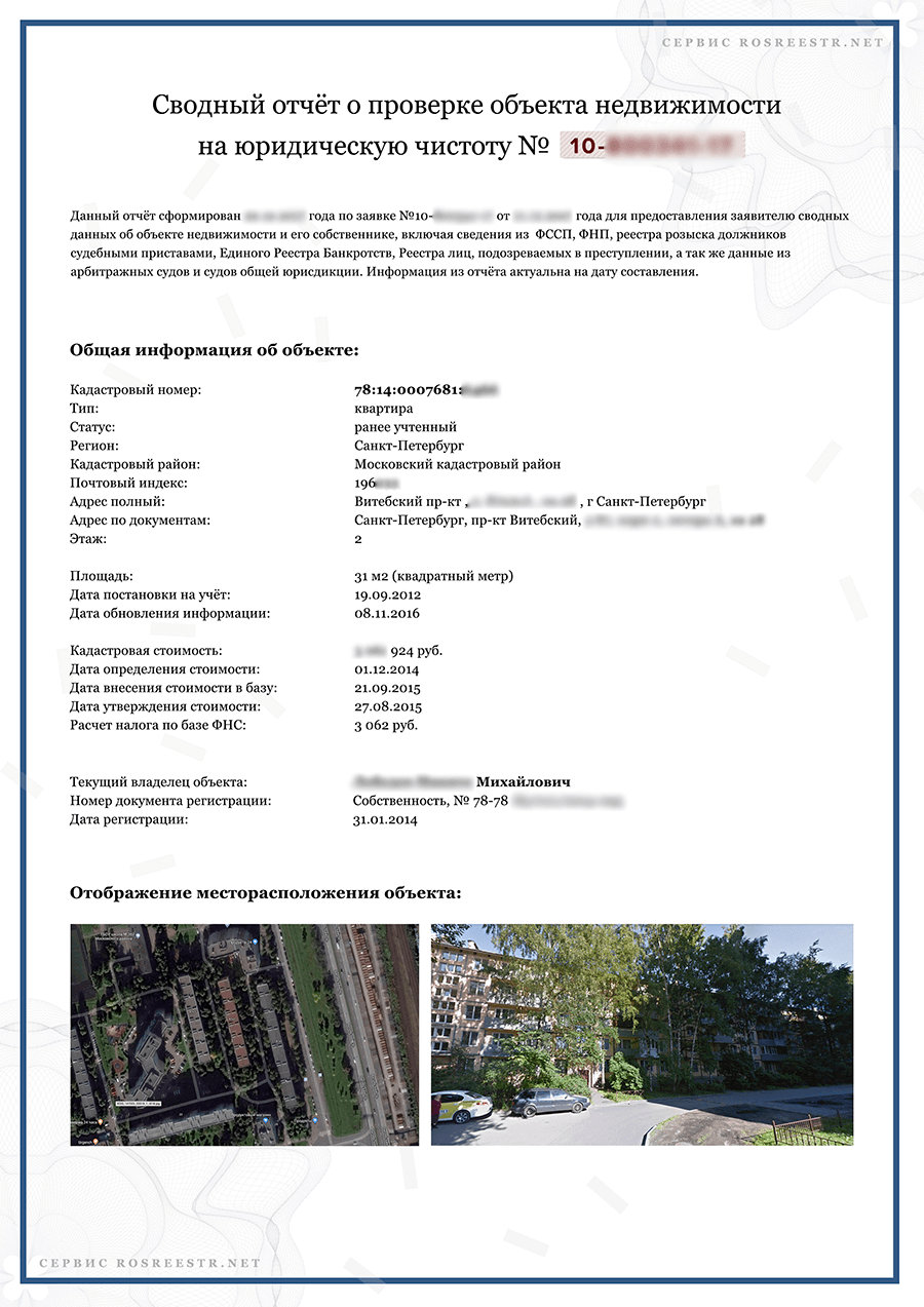 Для оформления заявки на получение онлайн отчета о проверке недвижимости, укажите кадастровый номер или адрес объекта. Далее найдите объект и оформите услугу по проверке объекта недвижимости перед покупкой. После оплаты, на ваш E-mail поступит полный отчёт о проверке недвижимости на юридическую чистоту в течение нескольких часов (сроки зависят от загруженности базы).